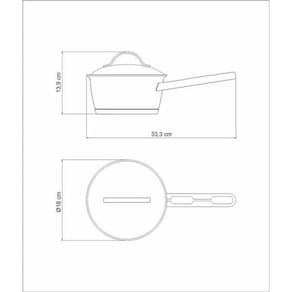 Antes do uso: Antes de utilizar o , remova as eventuais etiquetas e lave-o com água quente e de uso: Use fogo brando para evitar que o alimento grude no fundo da panela. O fundo triplo distribui uniformemente o calor, não sendo necessário o fogo alto, portanto, dessa forma, economiza energia. Quando a panela for utilizada no fogão a gás, a chama não deve ultrapassar a base da panela. No caso de uso em chapa elétrica, a chapa deverá ter o diâmetro igual ou inferior ao da panela. Sempre dissolver o sal em água fervente ou com os alimentos, mexendo os ingredientes no início do cozimento. Não aquecer o alimento colocando uma panela sobre a outra. Esse procedimento é perigoso, porque cria vácuo e impossibilita a sua alimentos que possuem amido, por exemplo massa e arroz, durante o cozimento, poderão deixar manchas na parte interna da panela. Essas manchas são facilmente removidas, passando um pano com suco de limão, vinagre ou a Pasta de Polir Inox Tramontina. Evite deixar alimento na panela por muito tempo, pois o sal também pode provocar manchas. Para que o produto de aço inox Tramontina fique sempre bonito e com brilho, recomendamos que seja lavado somente com detergente e esponja. Depois da lavagem, sempre que possível, enxágue o produto com água quente-o e seque imediatamente, para que se mantenha com o brilho . O cloro e as substâncias contidas na água podem deixar manchas.- Foto meramente ilustrativa- Embalagem litografada