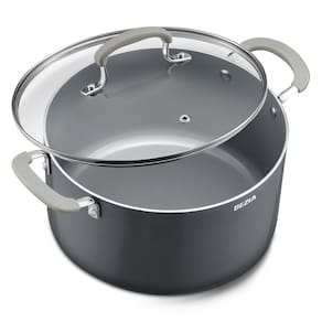 - Panela de 6 litros com tampa: Tamanho perfeito para casais e famílias pequenas, mas compacta o suficiente para facilitar o manuseio, esta panela versátil de 6 litros domina tudo, desde macarrão durante a semana e chili saudável até ensopado de domingo e até sobremesas