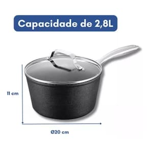 - Tampa de vidro: Acompanha tampa de vidro que facilita o monitoramento do cozimento e ajuda na retenção de calor. - Design elegante e versátil: Com acabamento preto fosco e detalhes sofisticados, ela combina com qualquer cozinha. - Cozimento uniforme: Sua base espessa distribui o calor de forma eficiente, garantindo pratos bem preparados. - Revestimento antiaderente: Não gruda e permite o uso de menos óleo, tornando o preparo mais saudável. - Compatibilidade: Pode ser usada em todos os tipos de fogões, incluindo indução. - Alça ergonômica: Garante segurança e conforto durante o manuseio.
