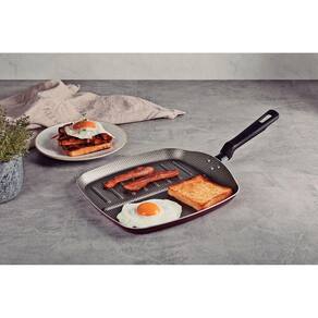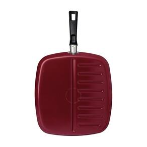 Panela Bistequeira Alumínio 26cm 1,0l Tramontina Grill Chapa Vermelha Cor: Vermelho Detalhes do produto: A bistequeira Tramontina Loreto em alumínio com revestimento interno antiaderente Starflon Max e exterior siliconado 26 centímetros vai fazer sucesso na sua cozinha. Produzida em alumínio proporciona um cozimento rápido e uniforme, revestida em antiaderente Starflon Max facilita a limpeza, pois, devido ao antiaderente, os alimentos não grudam. O cabo de baquelite antitérmico traz segurança durante o manuseio. Podem ser utilizadas em fogão a gás e elétrico, e levada à máquina de lavar louça. Informações Gerais: Corpo de alumínio com espessura de 2,3 mm que proporciona cozimento rápido e uniforme. Revestimento interno e externo de antiaderente Starflon Max que não gruda, é fácil de limpar, mais durável e não é prejudicial à saúde, pois é livre de PFOA. Cabo de baquelite antitérmico que oferece segurança durante o manuseio. Pode ir à máquina de lavar louças facilitando seu dia a dia. Pode ser utilizada nos fogões: gás e elétrico. Recomendações de uso: A capacidade volumétrica máxima para cozimento é de 3/4 da capacidade total da peça. Posicione o cabo do utensílio voltado ao centro do fogão. Em fogões com grade, centralize a peça sobre a chama ou fonte de calor e alinhe o cabo com a grade. Utensílios quentes devem estar fora do alcance das crianças. Antes do primeiro uso, lave com esponja macia, sabão neutro ou detergente líquido. Depois de secar, unte a área interna com óleo ou gordura e leve ao fogo por um ou dois minutos. Deixe esfriar e lave novamente. Seu utensílio Starflon está pronto para uso com ou sem gordura, sempre em fogo baixo ou médio nunca superior a 220 ºC . Ao manusear seu utensilio aquecido, cuide para não arranhar/riscar o revestimento externo. Evite manchas não escorrendo gordura e alimentos na área externa da peça. Caso esta situação ocorra, é recomendado realizar a limpeza imediata do local com um pano umedecido em água. Para mexer os alimentos use somente utensílios de silicone, nylon ou madeira. Este produto não necessita de manutenção, apenas limpeza. Limpeza: Evite a imersão do utensílio quente em água fria. Nunca utilize produtos abrasivos na lavagem. Se deixar queimar alimentos, umedeça a área e até que possa remover os resíduos grudados com esponja e sabão. Para maior durabilidade, não utilize em máquinas de lavar. Para descarte do produto e embalagem siga as orientações de reciclagem vigentes. Marca: Não Informado