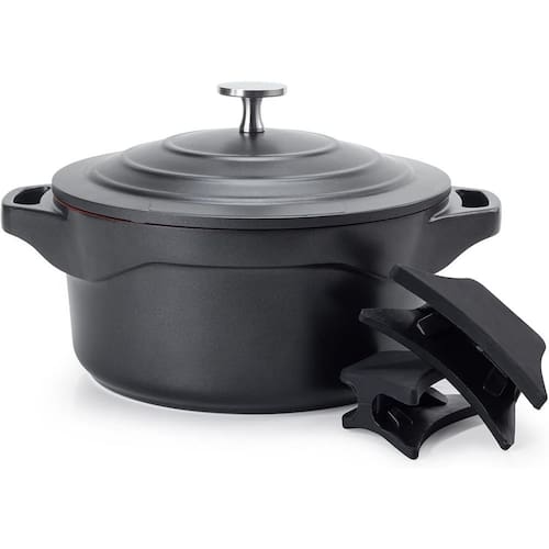 O revestimento antiaderente cerâmico possui ótimo desempenho para cozimento em baixas e altas temperaturas, a estrutura em alumínio reforçado ajuda a manter a temperatura nas panelas por mais tempo e a linha completa de Panelas Pretas Le Cook pode manter a temperatura por igual e por mais tempo em qualquer fonte de calor, inclusive de indução.