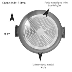 Panela caçarola com tampa indução marrom 3l 22x9 cm hérculesMarca: hércules (mundial)Modelo: pa300-c22maTipo: panela/caçarolaLinha: soft touchCor: marromFormato: redondaCapacidade: 3 litrosMaterial: fabricada corpo em alumínio e cabos em baquelite com acabamento soft touchRevestimento interno: antiaderente cerâmico.Cabos isotérmicos, não esquentam.Tampa de vidro temperada, com saída para vapor e bordas de silicone.Uso recomendado: fogão convencional, fogão de indução, fogão halogênio e forno até 180c. Não levar ao micro-ondas, geladeira e freezer.Pode ir a lava-louças, porém ter o cuidado na colocação com relação aos outros itens, evitando batidas e arranhões que podem danificar o produto na lavagem.Medidas do produto sem embalagem:Altura: 9 cmDiâmetro: 22 cmDiâmetro fundo especial fogão de indução: 16 cmPeso: 2 kgCapacidade: 3 litrosRecomendações: Não utilizar produtos abrasivos na lavagem, como saponáceos, esponjas duras ou palhas de aço. Evite a imersão da panela/frigideira quente em água fria.Seus preparos ficarão mais saudáveis e saborosos com as panelas caçarolas, oferecendo o que há de mais moderno para sua cozinha essa panela além de prática necessita de uma quantidade mínima de óleo para cozinhar seus alimentos. Fabricada em alumínio com 3mm de espessura, possui revestimento cerâmico e seu interior antiaderente facilita o preparo e sua limpeza. Possui cabos em silicone com acabamento soft touch isotérmicos (não esquentam), permitindo seu manuseio com segurança e facilidade. Seu fundo exclusivo conta com uma perfeita distribuição de calor, cozinhando em menos tempo e colaborando no custo benefício, indicada também no uso em fogões de indução. Sua tampa de vidro temperado conta com saída para vapor, bordas de silicone removível para uma melhor higienização. A cerâmica antiaderente é capaz de conduzir o calor do fogo para acelerar o cozimento e não libera componentes tóxicos na preparação dos alimentos. Use somente utensílios de materiais não abrasivos para não riscar a superfície.Produto com nota fiscal e garanti contra defeitos de fabricação.