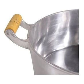 Produzida toda em alumínio batido espessura de 7 mm grossa sem emendas, alças de madeira.