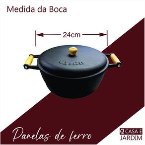 Panela Caçarola De Ferro Com Alça de Madeira Com Tampa 24cm Ideal para Arroz, frango, feijão e etc. A panela de ferro Casa e Jardim apresenta uma grande versatilidade onde elas fornecem suplementação de ferro para o organismo, não liberam toxinas nos alimentos. Tendo uma resistência duradoura cozinhando os alimentos por muito tempo. Todas as panelas de ferro do modelo caçarola podem ser utilizadas em todos os tipos de fogão a gás, a lenha, elétrico e também em cooktop de indução. Material: Ferro Fundido. Pegada: Duas alças de madeira : 90 dias contra defeito de fabricação. Acompanha: Tampa de ferro. Medida da Boca: 24cm Litros: 3,4 litros Nós da Casa E jardim Comércio trabalhamos com produtos de alta qualidade em ferro fundido, Como Fornos de ferro, panelas de ferro mineira, chapas de fogão a lenha, frigideira de ferro Casa e Jardim, chapa bifeteira de ferro, Fogareiro Ferro Fundido A Alcool Rechaud, calderão de ferro, calderão de bruxa, Rechaud de ferro, Chapa de ferro Casa e Jardim para porções, panelas de ferro, churrasqueiras a bafo toda linha doméstica para lhe atender. Marca: Não Informado