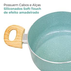 Possui cabos e alças siliconados Soft-touch com design amadeirado que dão um toque macio e não esquentam, evitando acidentes, além disso, a tampa é de vidro temperado com bordas e saída para vapor em inox, trazendo um design inovador, ideal para você que gosta de sofisticação e elegância em sua cozinha