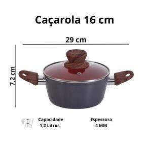 Panela Caçarola Nano Cerâmica Antiaderente Tampa V 16cm 1,2l