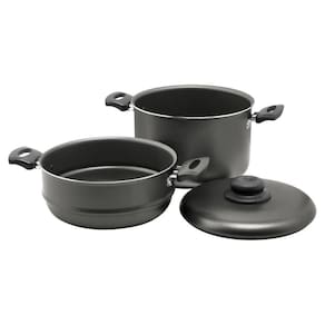 Panela 3x1 = panela de cozimento a vapor (cozivapor), lava arroz, caldeirão antiaderente alumínio 16 cm.