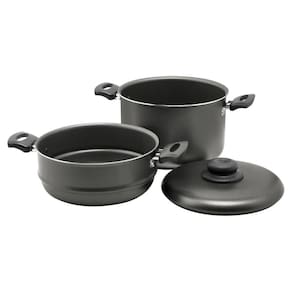 Panela cozimento vapor vaporella 16 antiaderente 3x1 grafite Panela cozimento vapor vaporella 16 antiaderente 3x1 grafite Benefícios: As panelas ramos, trazem não só a beleza, como a mostra qualidade de um produto bom, durável e ideal para a sua cozinha, com tamanho prático, fundo com cantos arredondados para facilitar o cozimento e a limpeza e cabos alongados para não aquecer com a chama do fogo. Características: Panela 3x1 = panela de cozimento a vapor cozivapor , lava arroz, caldeirão antiaderente alumínio 16 cm. A panela cozivapor é ideal para fazer receitas no vapor, cozinha seus legumes em 15 minutos, e seus legumes não perdem sabor e cor. Muito usada para aquecer o arroz e o feijão, mantendo solto, como o feito na hora. Além de economizar gás, pois você usa uma única boca do fogão. Toda em alumínio, ele possui revestimento antiaderente na cor grafite, permitindo que você faça alimentos muito mais saudáveis, já que não precisa utilizar óleo. Além disso, ela tem as alças e pegadores em baquelite garantindo muito mais segurança e facilidade no manuseio, já que não esquentam. E ela ainda tem capacidade para 2 litros, ideal para toda a família. Sua tampa em alumínio e com saídas de vapor proporcionam um cozimento mais rápido e uniforme. Desfrute da praticidade e eficiência desta Qualidade, funcionalidade e acima de tudo, praticidade - material: alumínio- cor: grafite - espessura: 1,5 mm - revestimento: antiaderente - diâmetro: 16 cm - altura panela: 15 cm- capacidade: 2 litros - peso 300 g Uso seguro e adequado Ao utilizar utensílios quentes tenha cuidado redobrado. Se necessário, utilize proteção para as mãos e mantenha fora do alcance de crianças. Para sua segurança, ao utilizar utensílios com cabos, mantenha os mesmos sempre voltados para o centro do fogão. Ao utilizar seu utensílio em fogões com grade, mantenha a peça centralizada e alinhe o cabo com a grade, para reduzir o risco de queda.