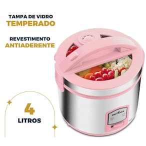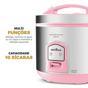 Descubra a praticidade e o charme da Panela de Arroz Elétrica Britânia 10 Xícaras, perfeita para quem busca refeições rápidas e saborosas. Com capacidade para até 10 xícaras, ela prepara grandes quantidades de arroz, ideal para famílias ou encontros especiais. A tampa com visor de vidro permite que você acompanhe o preparo sem abrir a panela, mantendo o cozimento uniforme e preservando o sabor. O revestimento antiaderente da Panela evita que os alimentos grudem e facilita a limpeza, enquanto as funções "manter aquecido", "refogar" e "cozinhar" tornam essa panela multifuncional e versátil. Acompanha colher, copo medidor e acessório de cozimento, garantindo praticidade em cada uso. Com design moderno e cor rosa encantadora, a Panela de Arroz Elétrica Rosa Britânia une funcionalidade e estilo. Transforme sua rotina na cozinha com praticidade e resultados incríveis!