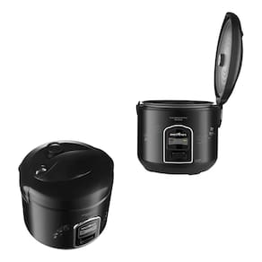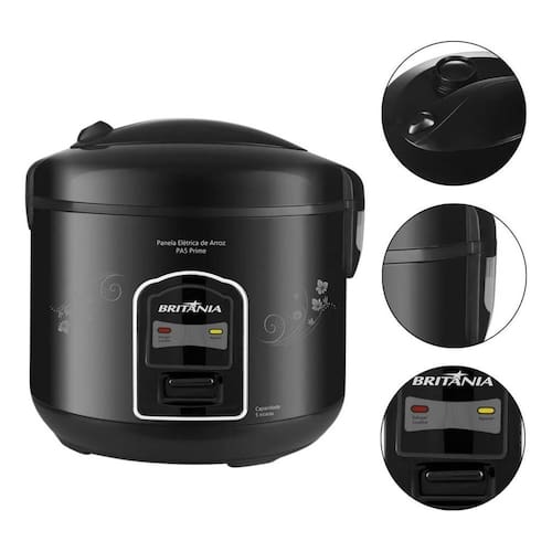 Tigela antiaderente, Tampa com vedação e saída de vapor, Cordão elétrico removível, Luz indicadora de funcionamento, Coletor de água.Lâmpada piloto