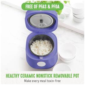 Revestimento derivado da areia garante liberação fácil dos alimentos e limpeza rápida, ideal para quem se preocupa com a saúde. Livre de PFAS, PFOA, grafite e cádmio, proporcionando refeições mais seguras e saudáveis em todas as ocasiões. Cozimento com um toque para Arroz Branco, Arroz Integral, Quinoa e Aveia Cortada em Aço, com resultados perfeitos e consistentes. Display LED brilhante e controles intuitivos para operação fácil e preparo preciso. Adapta-se automaticamente às condições da sua cozinha, garantindo a textura e o sabor ideais do arroz. Tempo de início de preparo personalizável, oferecendo flexibilidade no planejamento das refeições. Tamanho ideal para uso diário, perfeito para indivíduos ou pequenas famílias.