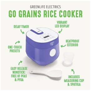 Nome da Marca: GreenLife Componentes Inclusos: Copo Medidor, Cozedor de Arroz, Potência Interna, Pá de Arroz Nome do Modelo: Go Grains! Cozedor de Arroz e Grãos Número do Modelo: CC008498-001 Fabricante: GreenLife UPC: 885837043266 Número de Identificação Comercial Global: 00885837043266 Fonte de Energia: Elétrico com Fio Características Especiais: Tecnologia de Um Toque, Fácil de Limpar, Exterior Frio ao Toque, Estabilidade sem Oscilações Potência: 240 watts Voltagem: 110 Volts Cor: Roxo Capacidade: 3,79 Litros (4 Quartos) Dimensões do Item (C x L x A): 18,9 cm x 18,7 cm x 20,9 cm Instruções de Cuidado do Produto: Peças Seguras para Lava-louças, Limpeza com Pano Úmido Material: Cerâmica Saudável e Antiaderente Livre de PFAS Material da Tampa: Plástico Peso:3 kg Marca: Não Informado