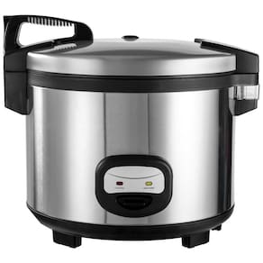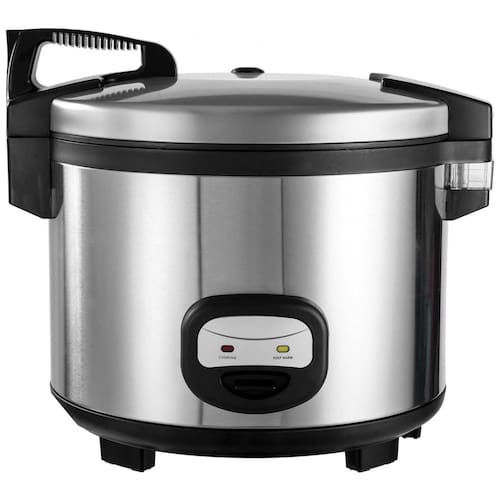 Construção de parede dupla durável Corpo durável e tampa de aço inoxidável resistente para uso contínuo. Esta panela elétrica de arroz possui construção de aço inoxidável de parede dupla isolada que manterá sua comida úmida e quente por horas. Operação fácil de usar O painel de controle simples nesta panela de arroz de restaurante facilita a operação de qualquer pessoa. A panela elétrica de arroz muda automaticamente para o modo manter quente após o término do cozimento. e fácil de limpar O pote interno de alumínio antiaderente é removível, fácil de limpar e possui marcações de linha de água visíveis para ajudar na medição precisa do líquido. O interruptor da fivela não é fácil de soltar, e confiável. A bandeja de recepção de vapor de água lateral recebe o excesso de condensado que flui para fora da drenagem, o que é fácil de limpar, e conveniente