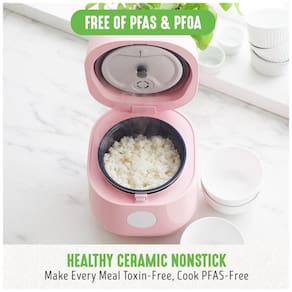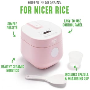 Panela de Arroz Elétrica Greenlife com controle de temperatura, revestimento cerâmico antiaderente livre de PFOA, display LED, presets para arroz branco, integral, quinoa e aveia, tecnologia de lógica difusa e temporizador ajustável.Lâmpada piloto