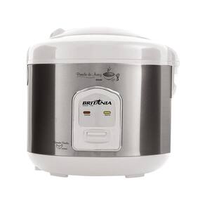 Com a Panela de Arroz Elétrica Britânia BPA5BI você vai ter arroz soltinho de forma rápida e descomplicada. Ideal para quem precisa de praticidade e agilidade na cozinha. Com sistema de aquecimento automático, ela mantém seus alimentos quentinhos prontos para servir. Possui potência de 400W, com capacidade de até 5 xícaras de arroz. Sua tigela em revestimento antiaderente vai facilitar muito na hora da limpeza. Conta também com luz indicadora de funcionamento, coletor de água proveniente do vapor da tampa e cordão elétrico removível, pronto para ir à mesa. E tudo isso com a garantia do inmetro, o que garante a qualidade e segurança do produto.Informações técnicasMarcaBritâniaReferência66401109ModeloBPA5BIMaterialMetal e plástico;Cordão elétrico removível.Coletor de água.Potência400W.Quantidade de xícarasCapacidade para 5 xícaras de arroz.PreparaArroz.Mantém os alimentos aquecidosSim Sistema de aquecimento automático.Tampa com saída de vaporSim Coletor de água, para a água proveniente do vapor da tampa.Revestimento antiaderenteSim Fácil de limpar.Luz indicadoraSimVoltagem110 VoltsConsumo aproximado de energia0,4 kWh/mês.CorCinza e BrancoINMETROBRA17/10610.Peso aproximado Peso do produto1,5 kg. Peso do produto com embalagem1,6 kg.Dimensões do produto LarguraFechada: 27,5 cm;Aberta: 27,5 cm. AlturaFechada: 39 cm;Aberta: 42 cm. ProfundidadeFechada: 25 cm;Aberta: 25 cm.Dimensões do produto com embalagem Largura24 cm. Altura24 cm. Profundidade25,5 cm.GarantiaPrazo de Garantia01 ano (3 meses de garantia legal e mais 9 meses de garantia especial concedida pelo fabricante).