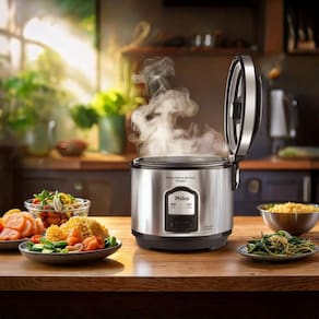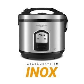 Acabamento em Inox, Tigela com revestimento antiaderente, Tampa com Visor Glass, Vedação segura com botão de travamento e saída de vapor, Cordão elétrico removível, Bandeja para cozimento de legumes no vapor.Lâmpada piloto