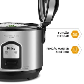 Acabamento em Inox, Tigela com revestimento antiaderente, Tampa com Visor Glass, Vedação segura com botão de travamento e saída de vapor, Cordão elétrico removível, Bandeja para cozimento de legumes no vapor.Lâmpada piloto