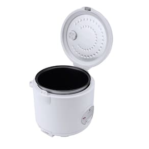 Manutenção da temperatura após o cozimento, Cuba interna antiaderente, Bandeja para cozinhar legumes no vapor, Tampa basculante com trava de segurança.Lâmpada piloto