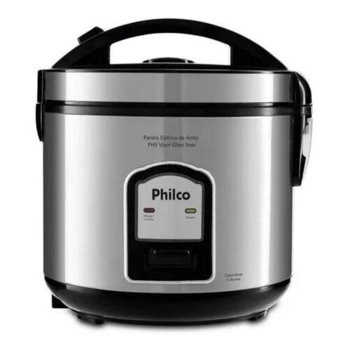 A panela de arroz elétrica philco ph5p é perfeita para fazer diversos tipos de arroz, legumes, verduras e sua badeja perfurada permite o cozimento a vapor. A panela tem capacidade para até 5 xícaras de arroz, coletor de água e tampa com visor em vidro para acompanhar o preparo do alimento. Conteúdo da embalagem: 01 - panela de arroz visor glass inox philco cracterísticas: - capacidade para 5 xícaras de arroz - tigela com revestimento antiaderente - luzes indicadoras de funcionamento - bandeja perfurada para cozinhar no vapor - acompanha colher e copo medidor - tampa vedada com alça, botão de travamento, saída de vapor e visor em vidro - coletor de água - cordão elétrico removível especificações técnicas: - marca: philco - potência: 400w - cor: prata - revestimento: inox - capacidade: 5 xícaras - alça: sim - copo dosador: sim - espátula: sim - bandeja perfurada: sim - display: mecânico - peso líquido kg : 1,74 - peso bruto kg : 2,03 - dimensões do produto axlxp : 24,3 x 23 x 22cm - vinisound - Este produto possui 12 meses de garantia. Imagens meramente ilustrativas. A garantia é responsabilidade do fabricante e esta limita se apenas á troca de qualquer produto encontrado com defeitos de fabricação desde que tenha sido utilizado corretamente ou devidamente instalado por um profissional qualificado.