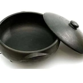Panela De Barro N 5 1 Panela de Barro Preto N5Pode ir em Fogão a Lenha e a Gás ATENÇÃOProduto artesanalAntes de ir é necessário o processo de cura da panela, com óleo TAMANHOS APROXIMADOSDiâmetro sem suporte : 36 cmDiâmetro com suporte: 40 cmDiâmetro a boca: 38 cm Peso: 7 kg Material: Barro.