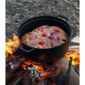 A panela possui duas alças de ferro, que garantem segurança e facilidade no manuseio. Além disso, acompanha uma tampa de ferro, que ajuda a reter o calor e o sabor dos alimentos durante o cozimento.