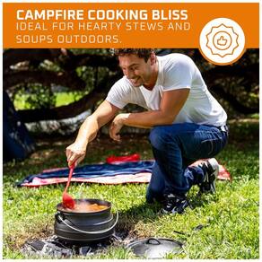As 3 pernas e a forma redonda da barriga permitem uma distribuição uniforme do calor ao redor da panela Retém bem o calor e pode ser mantido fervendo sobre algumas brasas Mantém os líquidos no ponto mais baixo para evitar que os alimentos queimem A tampa abobadada permite a circulação de calor interna ideal por toda parte As pernas altas o tornam ideal para cozinhar diretamente sobre fogo, carvão ou queimador a gás Marca: Não Informado