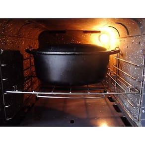 A caçarola oval é toda em ferro fundido