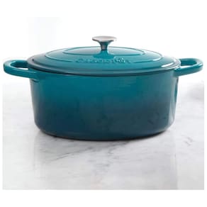 Panela de ferro fundido de formato oval esmaltada ferro fundido forno holandês, 7 litros, azul safira com tampa Recomenda se lavar à mão Perfeito para cozinhar lentamente, ferver, refogar, assar e muito mais A construção durável em ferro fundido retém e distribui o calor uniformemente O acabamento em esmalte de porcelana é fácil de limpar e naturalmente antiaderente Marca: Não Informado