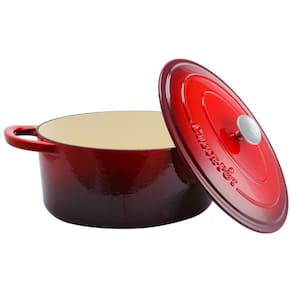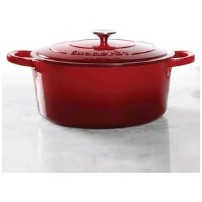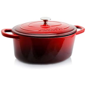Panela de ferro fundido forno holandês, 7 quartos, vermelho escarlate com tampa Recomenda se lavar à mão Perfeito para cozinhar lentamente, ferver, refogar, assar e muito mais A construção durável em ferro fundido retém e distribui o calor uniformemente O acabamento em esmalte de porcelana é fácil de limpar e naturalmente antiaderente Marca: Não Informado