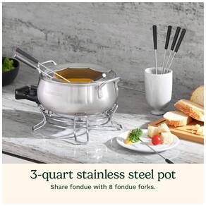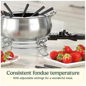Conjunto de fondue elétrico adequado para chocolate, queijo, caldo ou óleo Inclui base, tigela, sonda de temperatura, 8 garfos de fondue e suporte para garfos, sem BPA Tigela elegante de aço inoxidável escovado de 3 quartos, 2.8L com interior antiaderente O controle de temperatura removível é ajustável para uma ampla gama de receitas Produto construído de acordo com os padrões elétricos norte americanos Dimensões 15 x 26 x Conjunto de fondue elétrico adequado para chocolate, queijo, caldo ou óleo Inclui base, tigela, sensor de temperatura, 8 garfos de fondue e garfo Tigela elegante de aço inoxidável escovado de 3 quartos, 2,8 L com interior antiaderente O controle de temperatura removível é ajustável para uma ampla variedade de receitas Produto construído de acordo com os padrões elétricos norte americanos Marca: Não Informado