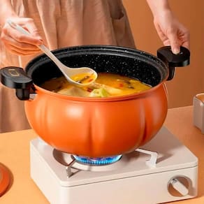 Panela de micro pressao formato abobora 8 litros cor abobora Panela de micro pressão. Características: Transforme sua cozinha e acelere o preparo das refeições com a exclusiva panela micro pressão em formato de abóbora mais do que uma panela, é um item de design que une beleza e funcionalidade, trazendo um toque de originalidade para o seu lar enquanto otimiza seu tempo na cozinha. Esta panela inovadora opera com um sistema de micro pressão, que cozinha os alimentos de forma mais rápida e eficiente que panelas comuns, porém com a segurança e facilidade de manuseio de uma panela tradicional. Perfeita para quem busca praticidade sem abrir mão do estilo Principais características e benefícios: Design único e encantador: com seu formato de abóbora vibrante e charmoso, adiciona um toque divertido e elegante à sua cozinha. A alça da tampa em dourado se for o caso confere um toque sofisticado. Cozimento otimizado por micro pressão: acelera o tempo de cozimento em comparação com panelas convencionais, preservando mais nutrientes, sabor e textura dos alimentos. Ideal para o dia a dia corrido Segurança e praticidade: funciona sob uma pressão mais suave que panelas convencionais, tornando-a mais fácil e segura de manusear, sem a necessidade de grande experiência. Possui válvula de segurança para controle de vapor. Tampa de vidro temperado: permite visualizar o processo de cozimento sem precisar levantar a tampa, controlando o ponto exato dos alimentos. Material de qualidade: revestimento antiaderente se aplicável, verifique o seu modelo que facilita o preparo e a limpeza. Corpo robusto e alças ergonômicas que garantem conforto e segurança no manuseio. O que você pode cozinhar nesta panela micro pressão Sua versatilidade permite o preparo de uma vasta gama de pratos, de forma mais ágil e com resultados deliciosos: Legumes e vegetais: cozinha brócolis, couve-flor, cenouras, batatas, vagem e outros vegetais de forma rápida, mantendo a cor viva e a textura al dente. Arroz e grãos: arroz soltinho e grãos como lentilha ou quinoa são preparados em menos tempo. Carnes macias: pedaços menores de frango cubos, filés , ensopados leves e carnes desfiadas ficam prontos com mais rapidez e tenrosidade. Sopas e caldos: base para sopas e caldos caseiros ficam mais ricos em sabor e prontos em menos tempo. Feijão: para pequenas porções, cozinha o feijão de forma eficiente. Ideal para: Cozinheiros do dia a dia que buscam otimizar o tempo. Quem procura uma panela com design diferenciado para servir à mesa. Pessoas que querem os benefícios do cozimento sob pressão, mas com mais facilidade e segurança. Um presente criativo e útil para amantes da culinária Transforme sua rotina na cozinha com esta panela micro pressão que é pura charme e eficiência Marca: Não Informado