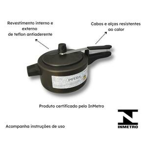 Agora ficou mais fácil, rápido e prático preparar as suas refeições. Com a panela antiaderente você também adquire praticidade e segurança para você e sua família. Seus componentes passam por testes rigorosos e o produto acompanha selo de qualidade INMETRO. Benefícios: - A borracha altamente resistente impede que o ar escape e faça com que a panela perca a pressão interna. - A válvula impede que o limite seja excedido. - Possui trava de segurança. - Antiaderente, os alimentos não grudam. - Menor tempo de preparo dos alimentos. Informações Técnicas: - Litragem: 2L. - Capacidade da Pressão: 70KPAS. Marca: Não Informado