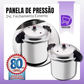 Ação: Adquira agora a sua panela de pressão de 24 litros com fechamento externo e tenha em mãos a solução perfeita para preparar grandes refeições de forma prática e segura. Aproveite toda a facilidade e eficiência que essa panela de pressão pode oferecer na sua rotina na cozinha.