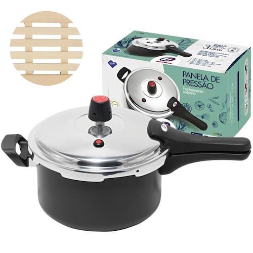 Panela 3 Litros Antiaderente Fechamento Externo Marcolar A Panela Antiaderente com Fechamento Externo Marcolar é a escolha ideal para cozinhar alimentos de forma rápida e segura, preservando os nutrientes e realçando o sabor das suas receitas. Com seu sistema de fechamento externo, ela garante praticidade e eficiência na cozinha, permitindo um cozimento uniforme e seguro. Projetada com revestimento antiaderente de alta qualidade, essa panela proporciona uma experiência de cozimento sem que os alimentos grudem, além de ser muito fácil de limpar. Sua construção robusta e design moderno garantem durabilidade e estilo, sendo uma excelente adição para qualquer cozinha. Além da eficiência no preparo dos alimentos, a panela Marcolar traz conveniência para o seu dia a dia, economizando tempo no preparo de pratos que exigem longos períodos de cozimento. É perfeita para quem busca praticidade, desempenho e segurança. DIFERENCIAIS - Fechamento Externo Seguro: Sistema de fechamento externo prático, garantindo mais segurança no manuseio e facilidade no uso. - Revestimento Antiaderente: Evita que os alimentos grudem, facilitando tanto o preparo quanto a limpeza. - Durabilidade e Estilo: Construída com materiais de alta qualidade, combinando resistência e um design moderno para sua cozinha. ESPECIFICAÇÕES TÉCNICAS Material: Alumínio Cor: Preto Compatibilidade: Ideal para fogões a gás Capacidade: 3L ITENS INCLUSOS 01 Panela 3L 01 Descanso de Panela Garanta refeições deliciosas, rápidas e seguras com a Panela Antiaderente Fechamento Externo Marcolar Marca: Não Informado