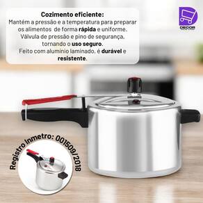 - com fogões: A gás, elétrico e vitrocerâmicoAo escolher uma panela de pressão, você está escolhendo muito mais do que apenas um utensílio de cozinha. Com a nossa panela polida, você está escolhendo segurança, eficiência e durabilidade. Nossa panela possui um pino central controlador de pressão e uma válvula de segurança em silicone, que trabalham juntos para garantir um controle interno preciso da pressão, evitando acidentes e proporcionando um cozimento rápido e na temperatura ideal. Além disso, o cabo e a alça são fabricados em baquelite, um material durável que resiste a altas temperaturas, proporcionando mais segurança e uma vida útil prolongada para o produto.