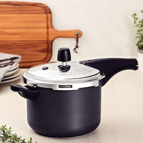 Um dos melhores aromas na cozinha é o de um feijão fresquinho. E se você busca uma panela prática, segura e resistente para preparar essas e outras delícias, pode contar com a Panela de Pressão Tramontina Vancouver em Alumínio com Revestimento Interno e Externo Antiaderente Starflon Max Grafite 20 cm de diâmetro 4,5 L. Perfeita para uso diário, ela é produzida em alumínio e conta com revestimento interno e externo em antiaderente Starflon Max, ambas características que proporcionam o cozimento dos alimentos de maneira uniforme e evitam que eles grudem. Além disso, ela é resistente, eficiente e segura, pois possui três válvulas de segurança para que você possa cozinhar tranquilamente e sem receios. Seus cabos e alça são em baquelite antitérmico e garantem ainda mais segurança durante o uso, pois reduzem a propagação do calor. Com um design moderno e na cor grafite, ela vai levar muito mais estilo e praticidade para sua cozinha!