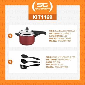 Panela de Pressão 4,5L Alumínio Antiaderente Vermelho + 3 Utensílios - Tramontina
