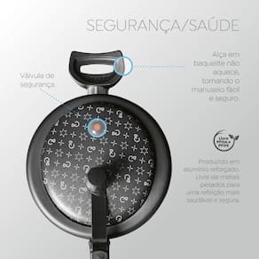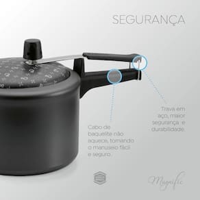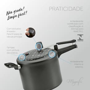 A Panela de Pressão Panelux Magnific 4,5L é perfeita para quem busca segurança reforçada, praticidade e desempenho superior na cozinha, tornando o preparo das refeições mais rápido, seguro e confortável.