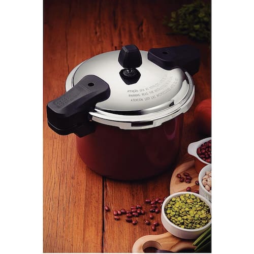Para sua segurança, as alças são em baquelite antitérmico, que reduzem a propagação de calor e proporcionam maior conforto durante o manuseio. Ela vem com tampa de alumínio com acabamento externo polido e interno satinado, e pode ser utilizada em fogões a gás, elétricos, vitrocerâmicos e indução, o que garante maior versatilidade.