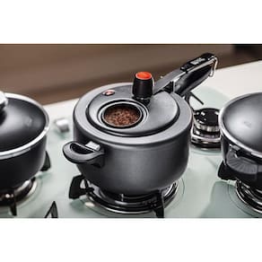 Visor de vidro, facilita o acompanhamento do cozimento sem abrir a panela