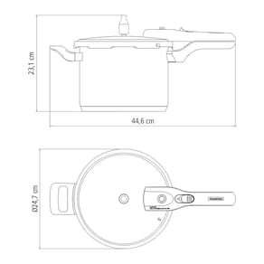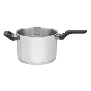 MUITO IMPORTANTE:-- CONFERIR PRODUTOS NO ATO DO RECEBIMENTO. NÃO ACEITAR PRODUTOS COM EMBALAGEM VIOLADA (AMASSADO, RASGADO, ABERTO, QUEBRADO, ETC), A RECUSA DEVE SER FEITA NO ATO.Panela De Pressão 6,0L Aço Inox Fundo Triplo Brava - Tramontina 62416220- Todos os atributos do aço inox com a agilidade e desempenho que só uma panela de pressão oferece. Além da praticidade, as panelas de pressão Tramontina são extremamente seguras.- Totalmente feita de aço inox, por isso não solta nenhum resíduo nos alimentos, mantendo-os saudáveis.- O fundo triplo (aço inox + alumínio + aço inox) distribui o calor uniformemente, proporcionando um cozimento mais rápido e uniforme, economizando energia e deixando os alimentos aquecidos por mais tempo.- Alça e cabo antitérmico, que garantem segurança e facilidade no manuseio.- A panela possui medidor de capacidade internamente, o que facilita o controle das quantidades dos alimentos.- É atestada pela Norma Nacional de Segurança.Garantia: 1 ano (90 dias de garantia legal acrescidos de 9 meses de garantia contratual) para vícios ou defeitos de fabricação.Ficha técnica:- Material: Aço Inox- Litragem: 6L- Produto: Panela de Pressão- Diâmetro: Ø 22cm- Tipo de Fogão: Gás, Elétrico, Indução e Vitrocerâmico- Máquina de lavar: Não- Capacidade mínima: 250 ml de líquido (1/4 litro)- Capacidade máxima: 2/3 da sua capacidade (alimento + líquido)- Sistema de descompressão: Sim- Pressão de trabalho: 80 kPa- Fundo Triplo: Sim- Espessura: 1mm;- Medidas totais com tampa: 24cm A x 44,5cm L x 25cm P; - Altura interna: 16cm. - Medidas da embalagem: 26cm A x 43cm L x 23cm P;- Peso bruto: 3,4kg.Perguntas frequentes:- Posso colocar na máquina de lavar?Não.- Posso colocar em fogão de indução?Sim, perfeita para indução, gás, elétrico e vitrocerâmico.- Esta panela possui fundo triplo?Sim, o fundo é composto por camadas de aço inox, alumínio e aço inox, nesta ordem.