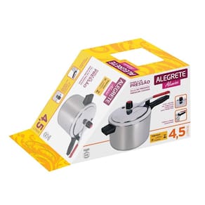 Panela alegrete 4 litros - praticidade, segurança e economia na sua cozinha Se você está buscando uma panela segura, eficiente e com excelente custo-benefício, a panela alegrete 4l em alumínio é a escolha perfeita para o seu dia a dia Cozimento rápido e uniforme Graças ao corpo em alumínio de alta qualidade, o calor se distribui melhor, acelerando o preparo de feijão, carnes, sopas e muito mais - economizando tempo e gás Segurança em primeiro lugar Alegrete é sinônimo de confiança: equipada com múltiplas válvulas de segurança, fechamento firme e vedação resistente. Tudo testado e aprovado pelo inmetro, para você cozinhar sem preocupações. Leve, prática e fácil de limpar Com apenas 4 litros, é perfeita para famílias pequenas ou uso diário. E se você escolher o modelo com revestimento antiaderente, vai notar como é fácil manter limpa - sem esforço Alça ergonômica e resistente ao calor Feita com baquelite reforçado, a alça é confortável e não esquenta. Dá firmeza na pegada, evita acidentes e facilita o manuseio mesmo com a panela cheia. Fabricada no brasil, com tradição e qualidade A marca alegrete tem tradição na produção de panelas acessíveis e confiáveis. São anos de presença nos lares brasileiros com produtos que realmente entregam o que prometem Ficha tecnica: Comprimento: 40 Altura: 22 Largura: 21 Peso bruto: 1,08 Espessura do aluminio: 1,6 Capacidade de volumétrica: 4,5 Marca: Não Informado Ean: 7905028838754