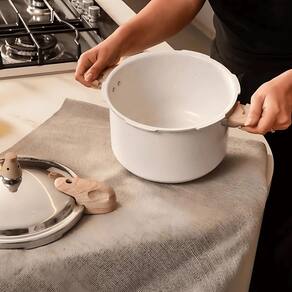 DIFERENCIAIS: A Panela Pressure da Brinox garante que os alimentos cozinhem muito mais rápido e de maneira uniforme, além de possuir revestimento interno cerâmico, que tem excelente propriedade antiaderente, perfeito para selar e refogar os alimentos, pois eles não grudam. O revestimento Pro Ceramic Premium traz maior durabilidade e resistência, e sua composição é livre de PFOA e metais pesados. Conta com 4 dispositivos de segurança e tampa de fechamento externo mais segura. Acompanha 1 Concha pra feijão MATERIAIS: A Panela Pressure da Brinox possui estrutura em alumínio que cozinha por igual e mais rápido. A tampa, também em alumínio, conta com quatro dispositivos de segurança para saída do vapor, evitando acidentes em caso de pressurização excessiva. O fundo permite que a panela seja utilizada em todos os tipos de fogões, incluindo o de indução. A alça é em baquelite com acabamento soft-touch e efeito amadeirado. Possui revestimento interno cerâmico Pro-Ceramic Premium. ESPECIFICAÇÕES TÉCNICAS: a Panela com Fundo de Indução Ceramic Life Pressure da Brinox tem capacidade para 5,4 litros, 22 cm de diâmetro, 15 cm de altura e acabamento interno e externo na cor Vanilla, um tom de creme com grânulos marrom. A tampa possui fechamento externo mais seguro e quatro dispositivos de segurança, sendo: trava de segurança, válvula de trabalho, escape de segurança e válvula de segurança. A panela conta com duas alças em baquelite. INSTRUÇÕES DE USO: leia atentamente o manual do produto. Faça a cura da panela antes de utilizá-la pela primeira vez. Não tente abrir a panela enquanto houver pressão. Utilize utensílios de silicone para mexer os alimentos. Não levar à lava-louças, ao forno ou micro-ondas. Respeite a capacidade máxima indicada. de 2 anos para defeitos de fabricação. LINHA: As panelas da Linha Ceramic Life da Brinox são sinônimo de eficiência e segurança na cozinha. Com revestimento cerâmico, proporcionam um cozimento rápido e uniforme, preservando o sabor e os nutrientes dos alimentos. Seu design e cores modernas adicionam estilo ao ambiente, enquanto a tecnologia de ponta garante durabilidade e resistência. Fáceis de lavar, a Linha Ceramic Life é ideal para quem busca praticidade e saúde no dia a dia. SUSTENTABILIDADE: No Grupo Brinox, a sustentabilidade é um compromisso contínuo. Adotamos práticas que minimizam o impacto ambiental, como a utilização de matérias-primas recicláveis e processos produtivos eficientes. Investimos em tecnologias limpas e buscamos constantemente a redução de resíduos e consumo de energia. Nosso objetivo é promover um futuro mais verde, integrando a responsabilidade ambiental em todas as etapas do nosso negócio. COMPATIBILIDADE: a Panela com Fundo de Indução Ceramic Life Pressure da Brinox é compatível com todos os tipos de fogão, incluindo cooktop de indução e fogão a gás. Descubra a eficiência da Panela Ceramic Life Pressure da Brinox Cozinhe mais rápido e preserve os nutrientes dos alimentos com seu revestimento cerâmico antiaderente. Segurança garantida com 4 dispositivos de proteção e fechamento externo. Compatível com todos os tipos de fogão, incluindo o de indução. Com 22cm de diâmetro, 5,4L de capacidade e alça soft-touch amadeirada, oferece durabilidade e estilo. Livre de PFOA e metais pesados, é a escolha perfeita para sua cozinha. Descrição A Panela Ceramic Life Pressure da Brinox é a escolha ideal para quem busca eficiência e segurança na cozinha. Com ela, você cozinha mais rápido, preservando o sabor e os nutrientes dos alimentos. Seu design moderno na cor Vanilla, com alças em tom amadeirado, adiciona um toque de elegância ao seu ambiente culinário.
