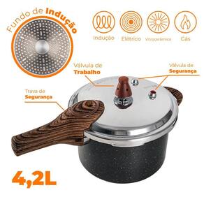 Panela de Pressão Antiaderente de Indução Brinox 4,2L Ceramic Life Pressure Granito
