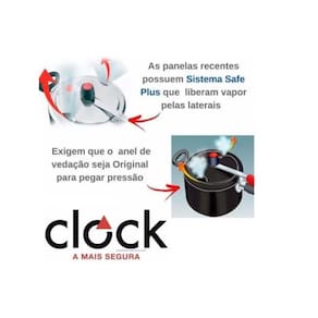 especificações técnicas espessura: 2,4 mm lavável em lava-louças: sim cor: alumínio conteúdo da embalagem - 1 panela de pressão clock prata - 4,5l garantia: 10 anos observações: item composto apenas pela panela de pressão clock prata - 4,5l.