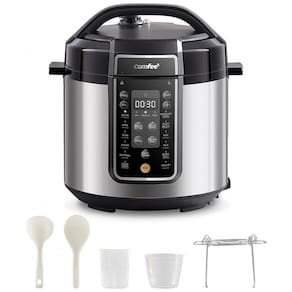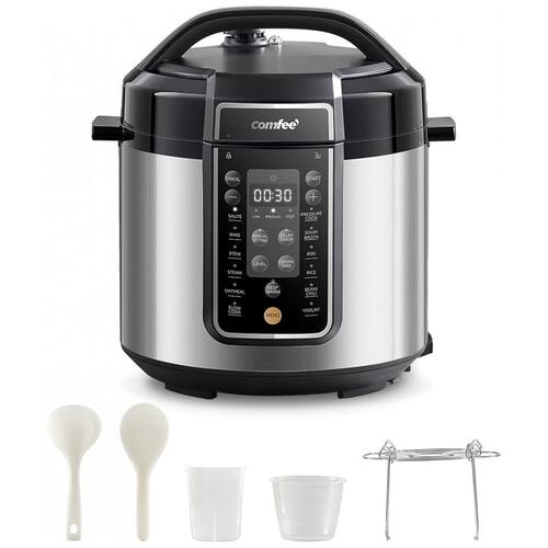 A Panela de Pressão COMFEE de 6 litros oferece 13 funções programáveis para atender a todas as suas necessidades culinárias. Cozinhe pratos gourmet como carne, caldo, feijão, aveia, entre outros, de forma simples e rápida. Cozinhe refeições saudáveis com sua panela revestida de cerâmica, livre de substâncias tóxicas. O revestimento antiaderente facilita a limpeza e garante durabilidade. Possui diversas medidas de segurança, como trava na tampa, válvula limitadora de pressão, controle automático de pressão e temperatura, proteção contra superaquecimento, entre outros. A panela interna saudável e antiaderente é fácil de usar e limpar, podendo ser levada à lava-louças. Ideal para cozinhar até 6 pessoas, vem com diversos acessórios úteis: colher, concha, copo de medição, suporte de vapor, entre outros.
