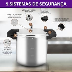 A Panela de Pressão de Alta Capacidade Rochedo Pro 20L é ideal para grandes preparos, conta com 5 sistemas de segurança e eleva o nível da cozinha profissional com total segurança. Conheça os diferenciais dessa linha: