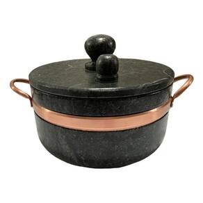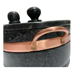 PANELAS DE PRESSÃO DE PEDRA SABÃO SÃO JOSÉ Panela de Pressão de Pedra Sabão com alça e contorno em cobre capacidade 4 litros- Diâmetro: 25 cm- Altura: 13 cm- Peso: 8 kg Matéria prima- Pedra Sabão e CobreQue tal reunir a família e amigos para compartilhar bons momentos acompanhados de deliciosas receitas!?As panelas de Pedra Sabão deixarão suas receitas ainda mais gostosas. Elas propagam o calor de forma uniforme e eficiente, cozinhando o alimento por igual e os mantem quente por mais tempo, mesmo após retirar do áveis e decorativas as panelas de Pedra Sabão levam charme e requinte para sua cozinha e mesa. Leve o sabor da comida mineira para sua casa!** Por se tratar de um produto natural e artesanal pode haver pequenas variações de coloração, traços, medidas ou capacidade em relação a descrição e fotos.** Os produtos de Pedra Sabão devem passar por um processo de cura, que sela e aumenta a resistência da pedra. O processo é simples e leva apenas alguns minutos. Enviaremos instruções de como curar seu produto. Com a cura a pedra escurece, ficando num tom próximo ao uso de pedra sabão tem sido cada vez mais comum em cozinhas de todo o . Inclusive, é uma febre entre chefes de cozinha e influencers da área de gastronomia. Além de dar mais sabor aos alimentos, proporciona muitos benefícios para a nossa saúde. Estudos recentes mostraram que, durante o processo de cozimento em utensílios de pedra sabão, há transmissão de nutrientes benéficos como o ferro, , cálcio e magnésio da panela para os ingestão de ferro contribui para aumento da nossa energia e disposição, além de prevenir o envelhecimento precoce, melhorar nossa concentração, reduzir o risco de doenças e fortalecer cabelo e á o auxilia no fortalecimento do nosso sistema imunológico e ajuda a acelerar o processo de cicatrização e afastar o surgimento de infecções e outras doenças, como o e alguns tipos de câ cálcio, por sua vez, é fundamental para a mineralização dos nossos ossos e dentes. Também é o principal agente responsável pela divisão , pela contração dos músculos, secreção de hormônios e coagulação sanguí magnésio é um mineral que desempenha um papel em mais de 300 reações enzimáticas em nosso organismo. Dentre as suas funções estão o auxílio na função muscular e nervosa, além de contribuir para regular nossa pressão sanguínea e fortalecer nosso sistema imunológico.