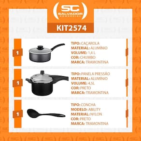 Panela de Pressão Effect 4,5L e Panela Turim Alumínio Antiaderente 1,4L PTC + Concha - Tramontina