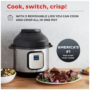 A mais recente inovação dos criadores da famosa série Duo, a Instant Pot Duo Crisp combina uma panela de pressão e uma air fryer com 2 tampas removíveis e convenientes.